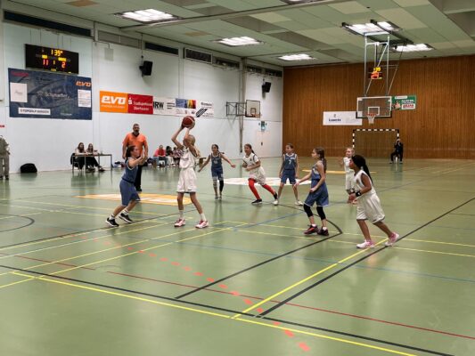 Schon in der ersten Spielminute konnte der erste Korberfolg bejubelt werden – der Treffer zum 2:2 sorgte für große Freude bei Spielerinnen, Trainerteam und Fans. Auch wenn das Spiel am Ende mit 17:110 an die erfahrene Mannschaft von NBO ging, überwog die Begeisterung über diesen Neustart.