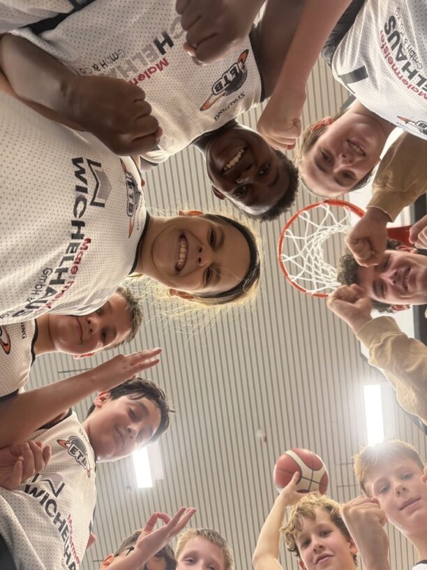 Heroisch den Sieg für die Schwarz-Weissen erkämpften: Coach T, Joschua, Hannes, Tarek, Elias (auch Adler Frintrop/Coach Rene) Sarp (vorher: Tofas Spor), Henry, Loann (vorher Crobaskets/ATV/Coach Elisabeth) Sufyan, Max